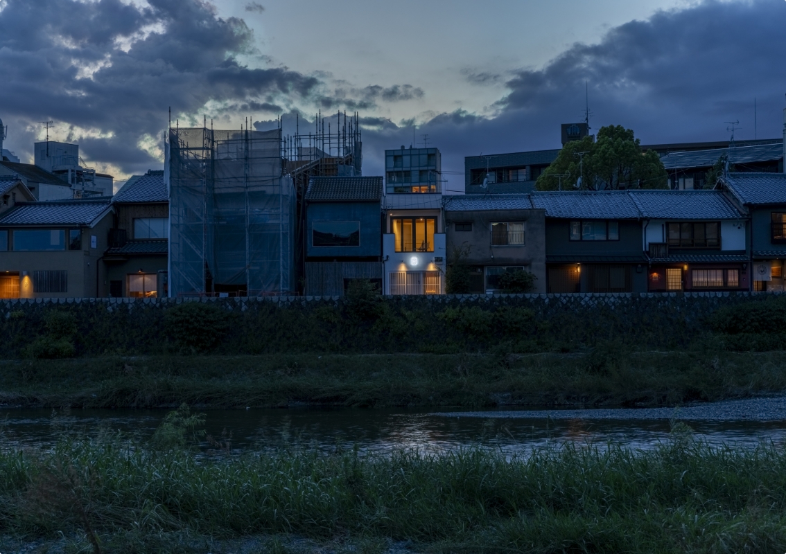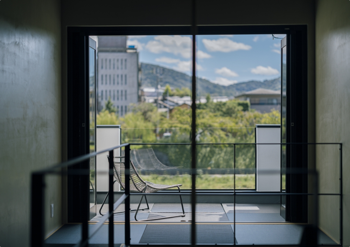 2階には季節ごとに違った鴨川の景色を見せる外気浴スペース、